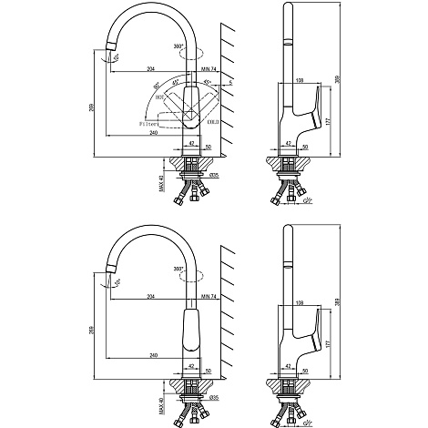 • Керамический картридж 35 мм с функцией подключения питьевой воды