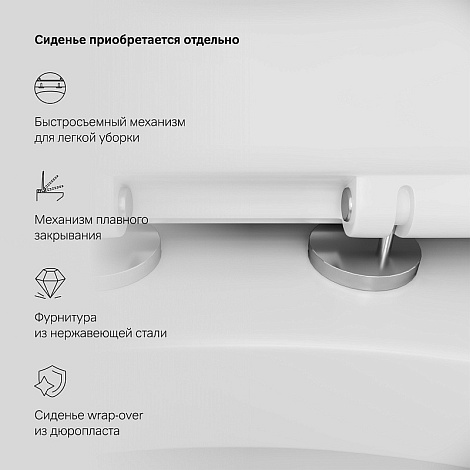 - унитаз из санфарфора не впитывает запахи и не меняет цвет, а скрытые крепления с фановым выходом облегчают чистку поверхности; дюропласт - материал сиденья, предотвращающий появления повреждений на поверхности.