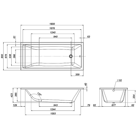 Допуск на отклонение фактического размера акриловых комплектующих, относительно заявленных на чертеже +/- 7 мм на 1 погонный метр. Размеры помещения под установку ванны должны обеспечивать технологический зазор +5 мм с каждого борта ванны (для учета линейных расширений материала под воздействием температуры и веса воды).